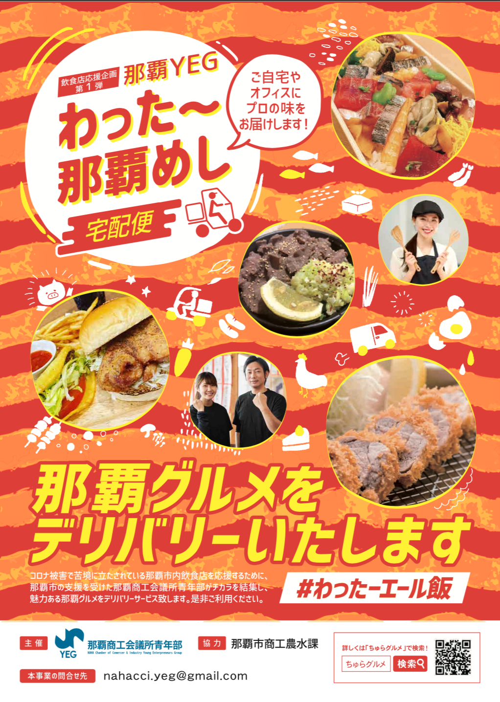 那覇市が実施する「那覇市『経済をつなぐ』応援事業者支援活動に関する状況提供について」の助成を活用し、「那覇YEGわったー那覇めし宅配便」という地域の飲食店事業者を支援するためのデリバリー事業を下記の通り実施するはこびとなりました。